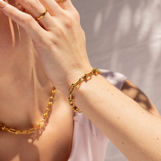18K Gold PVD Stainless Steel Hardware Chain Bracelet: Gold