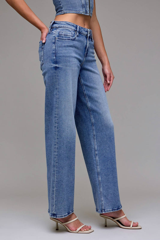 Stretch High Rise Wide Leg Jeans Medium Denim